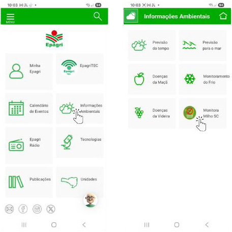 O aplicativo Epagri Mob pode ser baixado gratuitamente em celulares Android e IOS. Nele é possível ter acesso às publicações, tecnologias, unidades da Epagri, previsão do tempo, monitoramento do frio e informações sobre doenças em videiras e maçãs.
