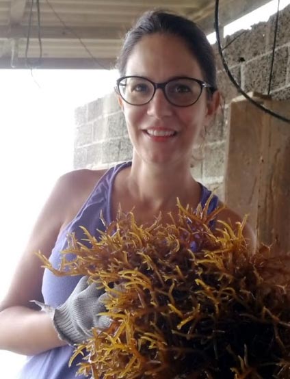 A maricultora Tatiana produz macroalgas para alimentação