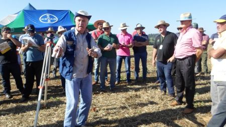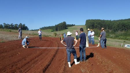 Quase 100 pessoas participaram do I Seminário Microrregional de Desenvolvimento Rural Sustentável de Caxambu do Sul com a temática “Terraceamento por Volume de Enxurrada”. O evento foi realizado nos dias 26 e 27 de março na propriedade da família Golin, em Caxambu do Sul, e contou com a instrução do engenheiro-agrônomo Jorge Lemainski, da Embrapa Trigo, de Passo Fundo (RS).