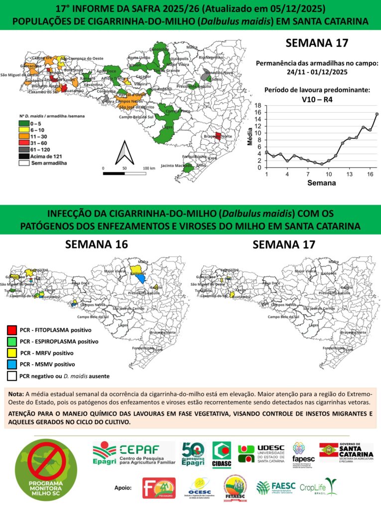 Informes do monitoramento da cigarrinha-do-milho em Sant Catarina safra 2025/26