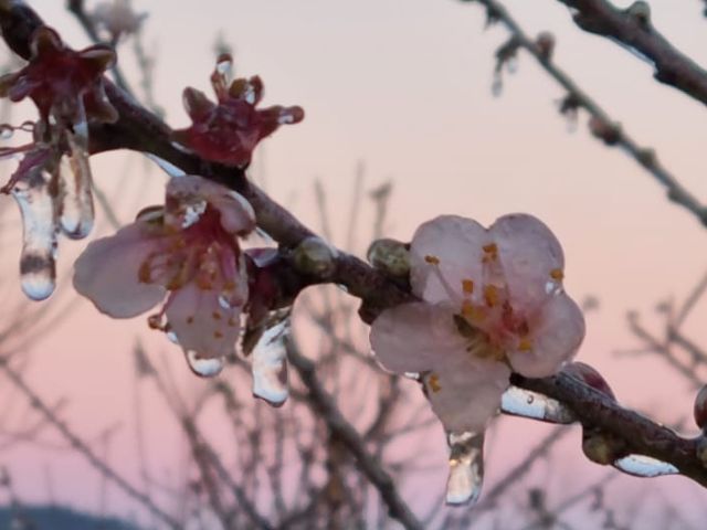 A geada pode comprometer pomares inteiros de frutas de caroço, como pêssego e…